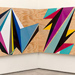 So Cabieses’ latest work does not claim a connection with the pure geometric art tradition in Peru’s modern art period, –during which geometrical abstraction was very short-lived–, although from its very mode of production and insertion in the art market, it is possible to say of it that it constitutes a series of erudite works. By a very simple strategy –one could almost call it a sleight of hand– he has managed to introduce into an art gallery space a mode of painting that harks of a rough Panamerican highway culture and wears its brightly-coloured, hard-edged and pointedly angular, popular not populist, heart on its sleeve.