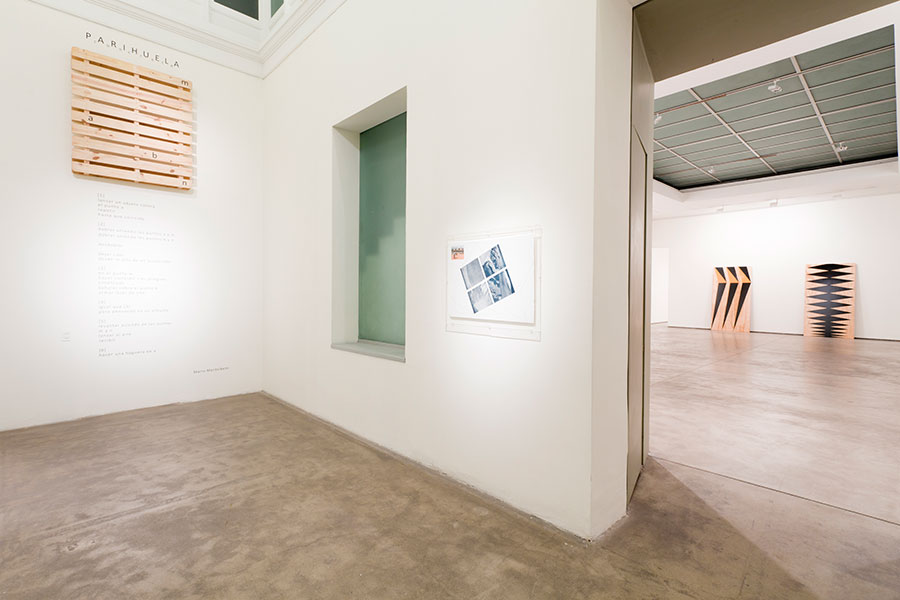Cabieses does not resort to references from 20th century art history and rather chooses as his starting point the appropriation of and elaboration upon a visual, decorative practice, typical of the coast of Peru. The wooden-closed-box structures for the transport of medium sized loads, in the back of trucks, are decorated on the outside with linearly defined, neatly painted geometrical motifs. These may have been derived, at some point in the second half of the 20th century –let us speculate-, from second-hand and even third-hand versions of Bauhaus geometric painting; from 1950s Italian designer Giò Ponti’s work; from 1960s Op Art; or even, from the decorative patterns on pre-Hispanic wooden ceremonial vessels. The truck-box linear motifs are, however, recognized now as a fully local and vernacular visual manifestation.